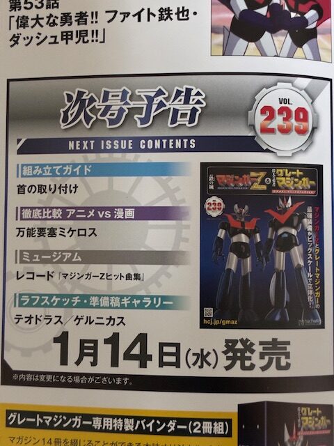 今日は、「週刊マジンガーZを作る」の第238号を組み立てていきたいと思う。「延長オプションパーツ」で考えれば、今回で第38号目になる。