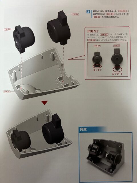 図のように、固定部品(小)238-02と固定部品(大)238-04の凸部を首(前)238-01の凹部にはめ込む。