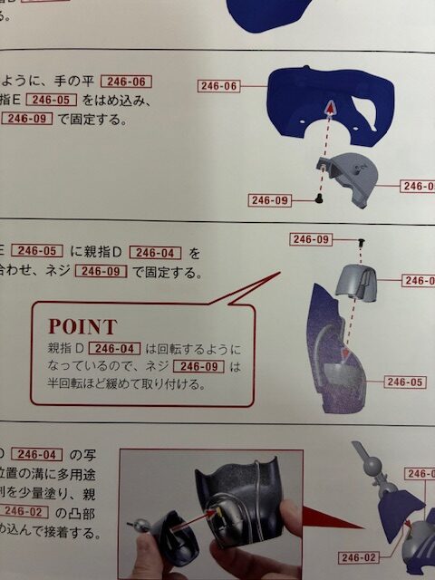 POINT 親指D 246-04は回転するようになっているので、ネジ246-09は半回転ほど緩めて取り付ける。
