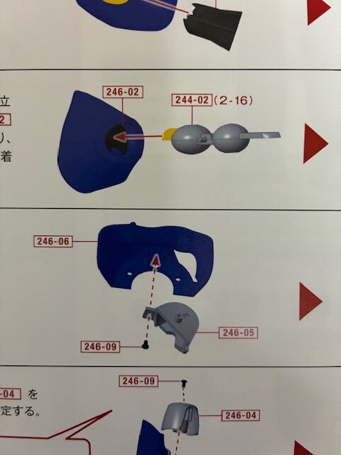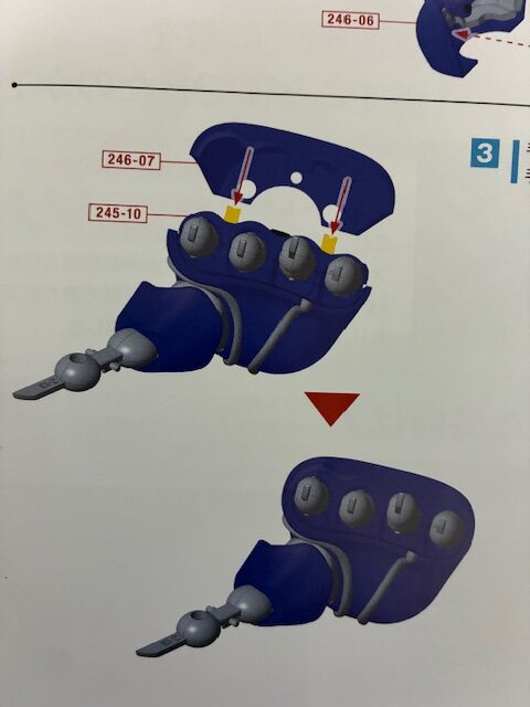 親指E 246-05に親指D 246-04をはめ合わせ、ネジ246-09で固定する。