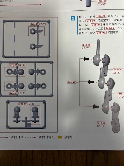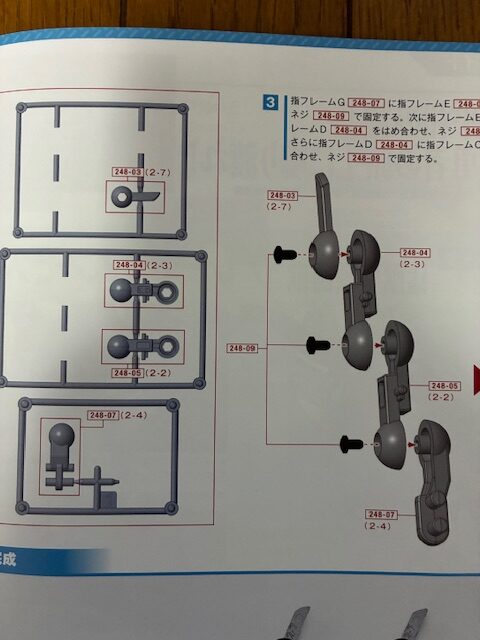 組み立てガイドの次回予告をみると、「可動指右手の組み立て(2)」とある。