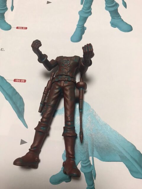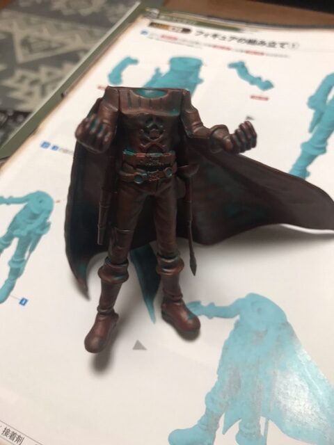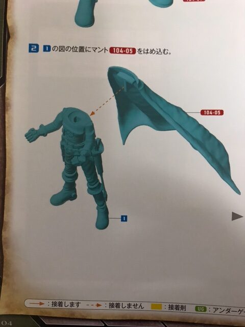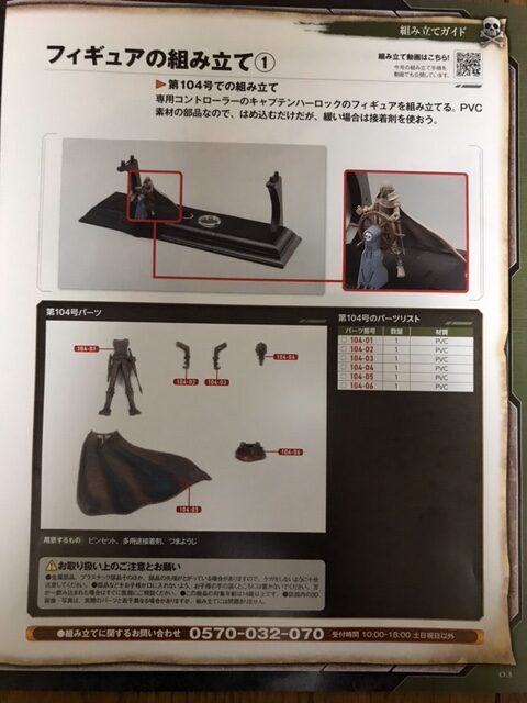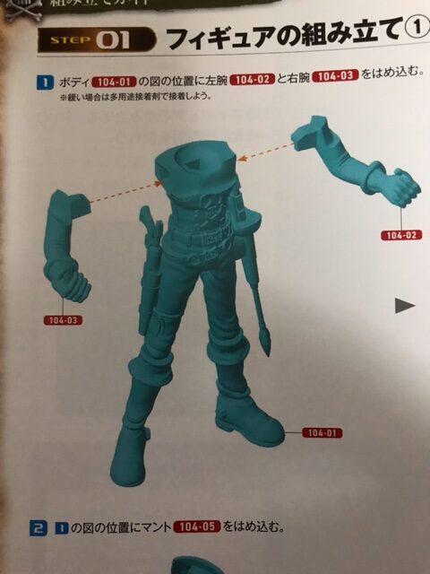 専用コントローラーのキャプテンハーロックのフィギュアを組み立てる。PVC素材の部品なので、はめ込むだけだが、緩い場合は接着剤を使おうとの記述がある。