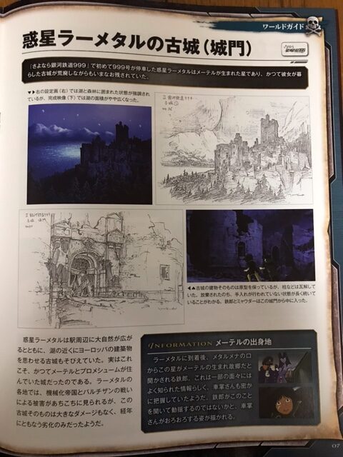 「さよなら銀河鉄道999」ではじめて999号が停車した惑星ラーメタルはメーテルが生まれた星であり、かつて彼女が暮らした古城が荒廃しながらもいまなお残されていた。
