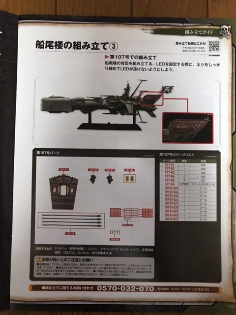 今日は、「週刊 海賊戦艦 アルカディア号」の第107号を組み立てていきたいと思う。