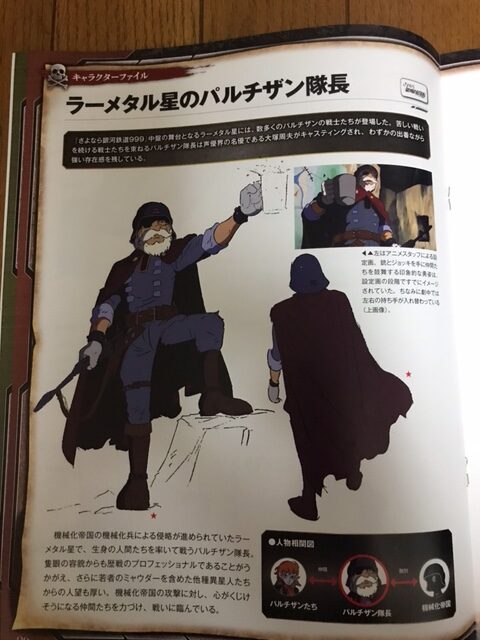 「さよなら銀河鉄道999」中盤の舞台となるラーメタル星には、数多くのパルチザンの戦士たちが登場した。苦しい戦いを続ける戦士たちを束ねるパルチザン隊長は声優界の名優である大塚周夫がキャスティングされ、わずかの出番ながら強い存在感を残している。
