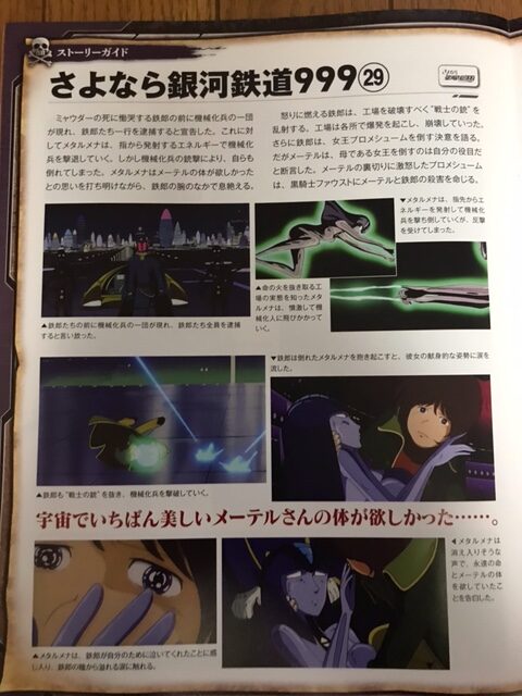 しかし機械化兵の銃撃により、自らも倒れてしまった。メタルメナはメーテル体が欲しかったとの思いを打ち明けながら、鉄郎の腕の中で息絶える。