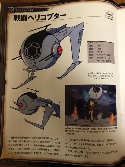「さよなら999」のりんたろう監督は、メカデザイン担当の板橋克己氏に球体型の戦闘ヘリをオーダーした。打ち合わせにおいてりん監督は、トンボのようなイメージでまとめるようにと、さらなる具体案を提示する。