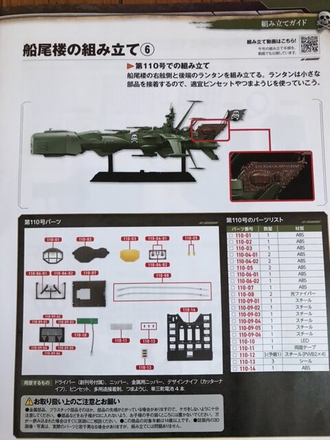 今日は、「週刊 海賊戦艦 アルカディア号」の第110号を組み立てていきたいと思う。