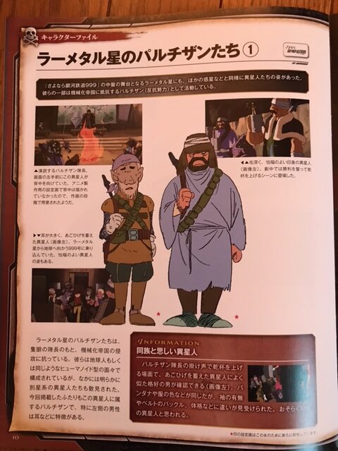 「さよなら銀河鉄道999」の中盤の舞台となるラーメタル星にも、ほかの惑星などと同様に異星人たちの姿があった。彼らの一部は機械化帝国に抵抗するパルチザン(反抗勢力)として活動している。