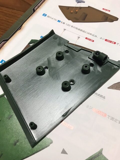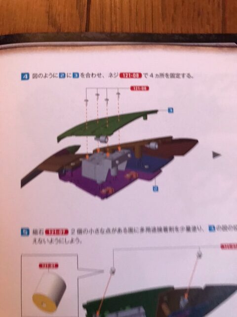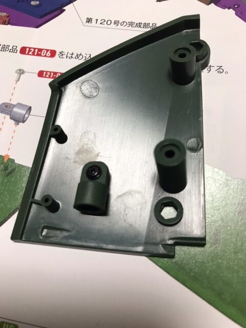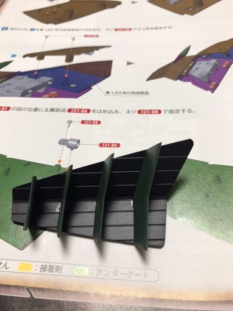 図のように第120号の完成部品をはめ込み、ネジ121-08で2ヵ所を固定する。