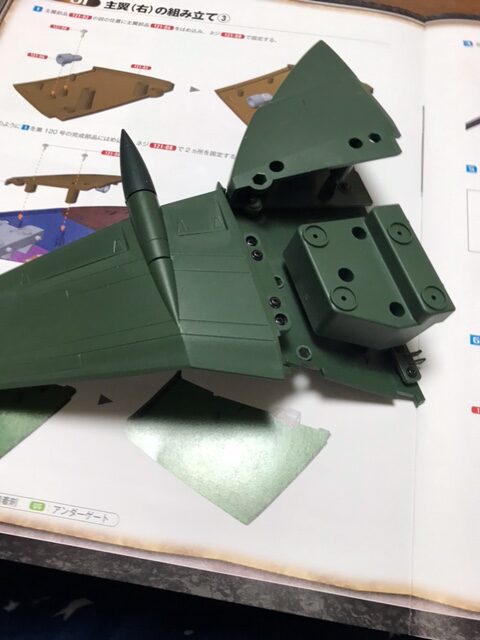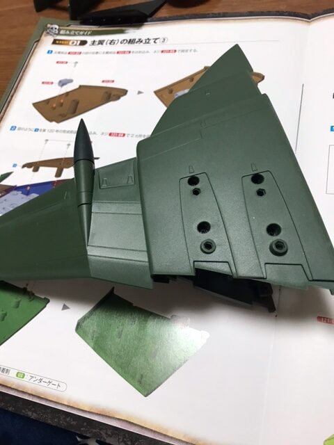 組み立てガイドの次回予告をみると、「主翼(右)の組み立て④/艦体基板の接続」とある。あと2号分くらいで主翼(右)は完成するように思われる。