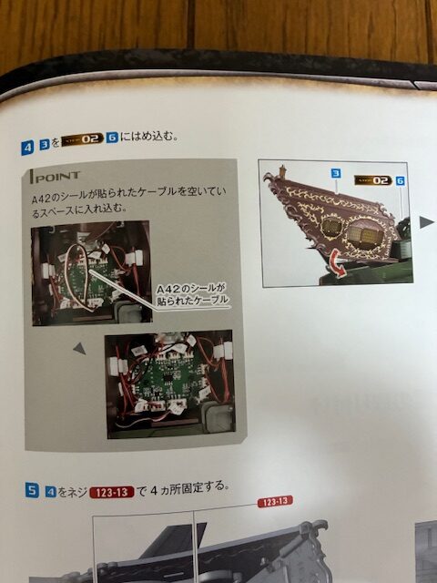 写真の位置の穴に、A42のシールが貼られたケーブルを通す。
