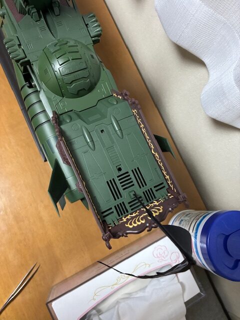 通信アンテナをはじめとしたロッドを組み立て、ついに艦上構造物と船尾楼、主翼を艦体に取り付けた。これでアルカディア号は完成と言ってもいいくらいだ。