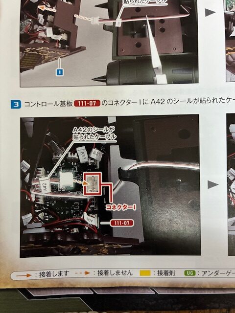 コントロール基板111-07のコネクターIにA42のシールが貼られたケーブルを接続する。