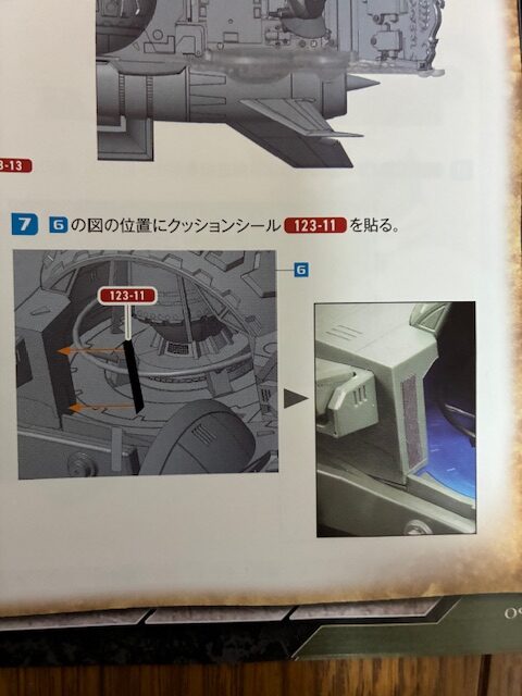 図の位置にクッションシール123-11を貼る。