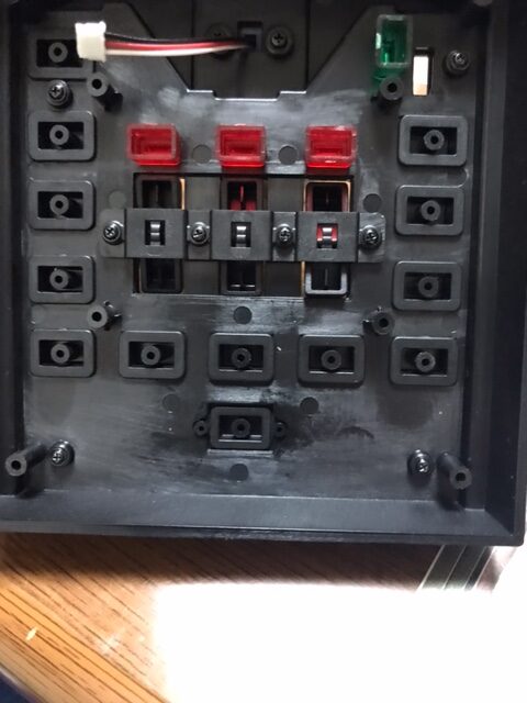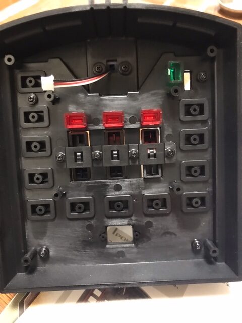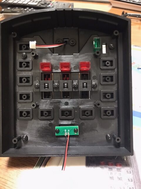図の位置にロッカースイッチボタン094-04 3個をそれぞれはめ込む。