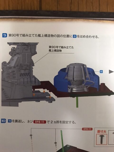 第90号で組み立てた艦上構造物の図の位置にはめ合わせる。