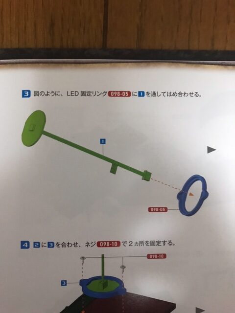 図のように、LED固定リング098-05に通してはめ合わせる。
