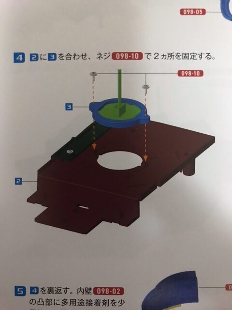 部品を合わせ、ネジ098-10で2ヵ所を固定する。
