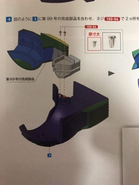 図のように第99号の完成部品を合わせ、ネジ100-04で2ヵ所を固定する。